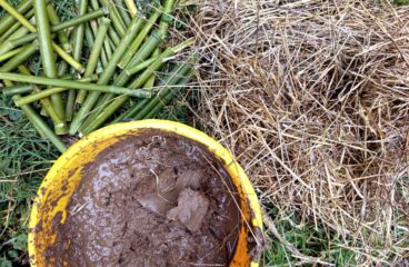 Zo maken we de mudwall-nestelementen voor onze bijenhotels: Door een combinatie van löss en hooi ontstaat een natuurlijke nestwand.