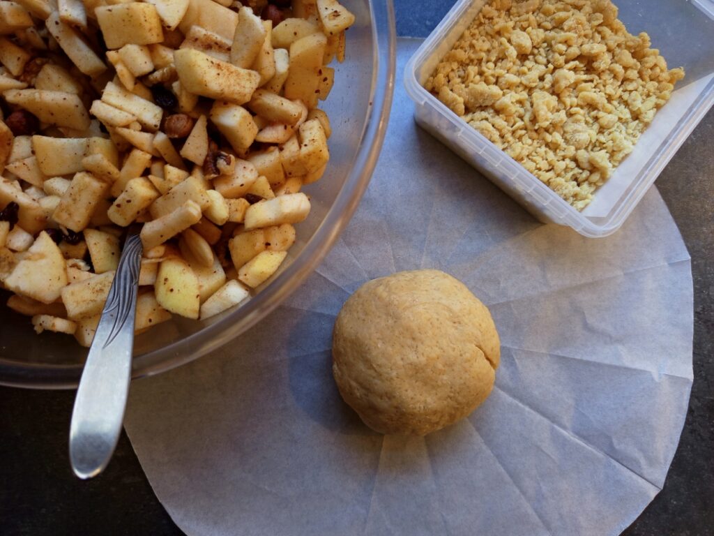 We hebben nu 3 delen: Bodem, vulling en de kruimels om af te dekken.