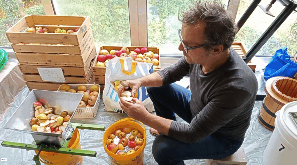 meer lezen...Voor beide batches werden de appels gewassen in een lichte oplossing van sulfiet en citroenzuur. Rotte plekken werden weggesneden, maar het klokhuis en de zaden werden mee verwerkt in de crusher.