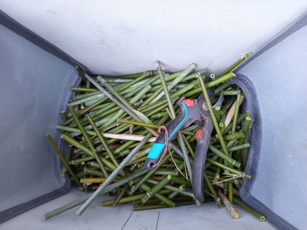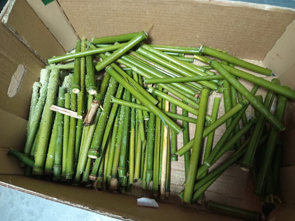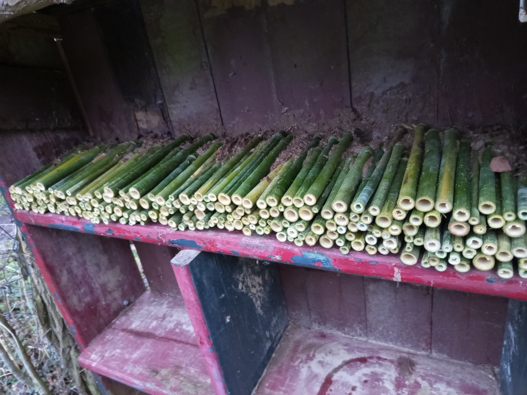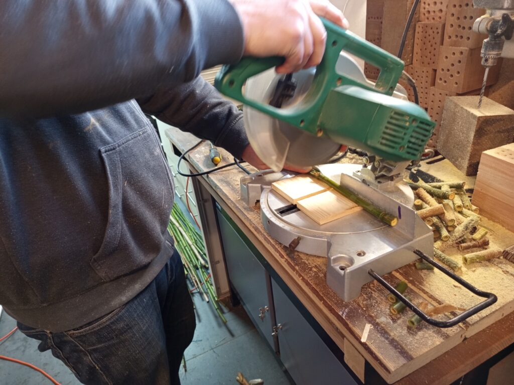 Dunne bamboestengels zijn ideaal voor kleine bijen. De dikkere varianten, met een diameter groter dan 1 cm, dienen vaak als overnachtingsplek voor de moederbij, dicht bij haar nest. De dunne stengels kunnen eenvoudig met een snoeischaar op maat worden geknipt zonder dat ze splijten. Voor de dikkere bamboe is een zaag noodzakelijk; bij gebruik van een snoeischaar zal de stengel namelijk wel splijten.