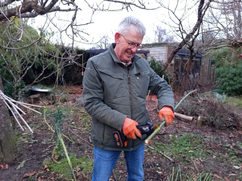 Bekijk...Bamboe is van nature hol en daardoor ideaal als nestgelegenheid voor diverse bijensoorten. Omdat de stengels om de 10 tot 25 cm een natuurlijke verdichting (knoop) hebben, kunnen we ze zo zagen dat de voorkant open is en de achterkant dicht blijft. Precieze maten zijn hierbij niet nodig; een gevarieerde mix van lengtes en diameters is juist perfect om verschillende soorten bijen aan te trekken.