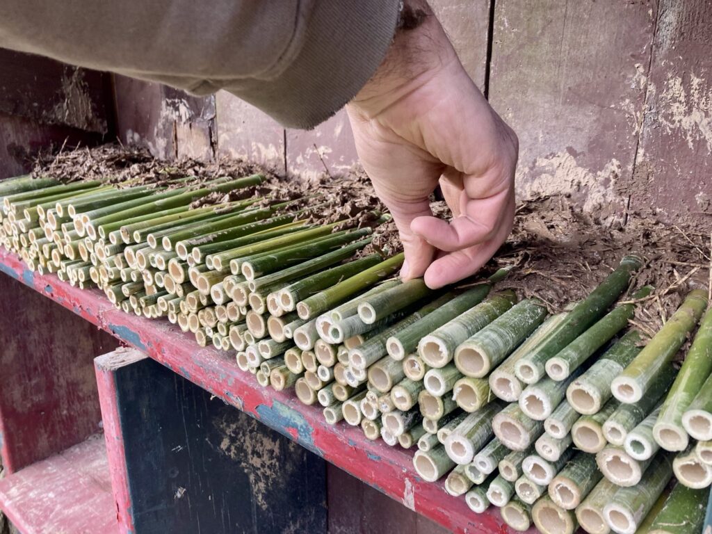 Bekijk...Zo maken we de bamboe-nestelementen voor onze bijenhotels: een natuurlijke combinatie van bamboepijpjes, modder en hooi.