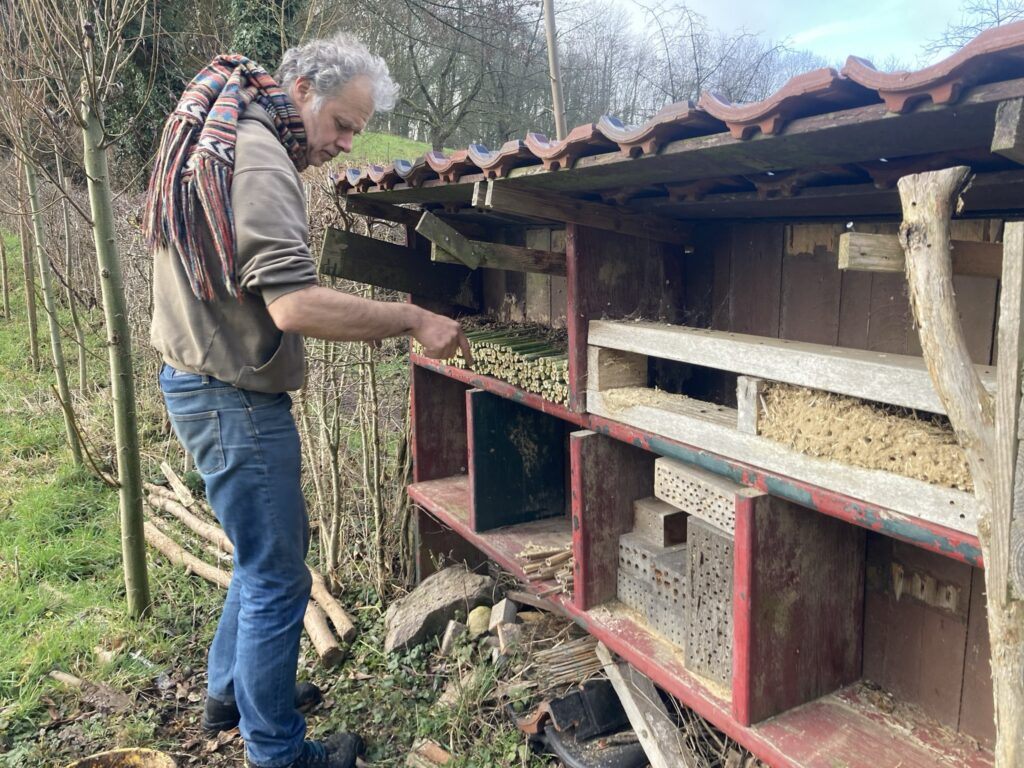 Bekijk...Zo maken we de mudwall-nestelementen voor onze bijenhotels: Door een combinatie van löss en hooi ontstaat een natuurlijke nestwand.
