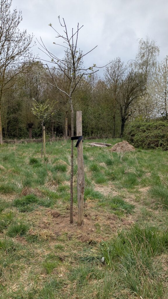 De gesteltakken beginnen hun groei schuin omhoog, maar naarmate de boom ouder wordt, nemen ze een meer bijna horizontale positie aan. Dit draagt bij aan de uiteindelijke, wijdere vorm van de kroon. De takken zijn vrij dicht bezet met zijhout, wat belangrijk is omdat de bloei en de vruchtontwikkeling voornamelijk plaatsvinden aan het tweejarige langhout en eindstandig aan het korthout.