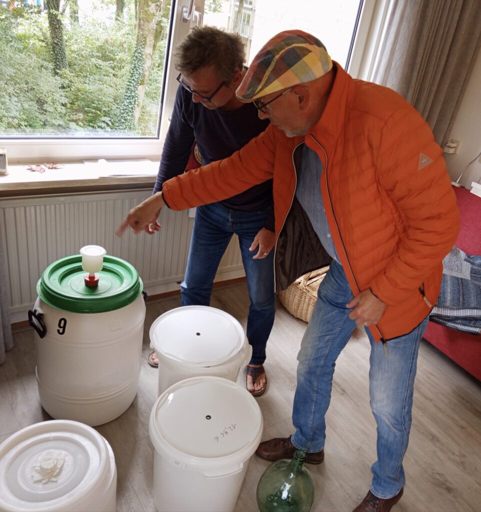De crusher hadden we al. De fruitpers is aangeschaft geworden (2e hands koopje) ook voor vers appelsap te maken bij oogstfeesten en filmavonden. De vergistingsvaten zijn in bruikleen.