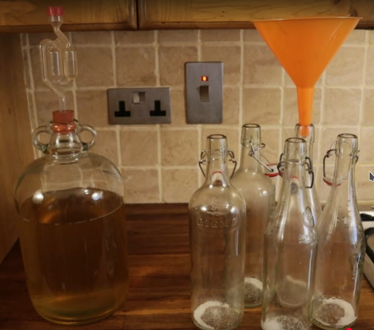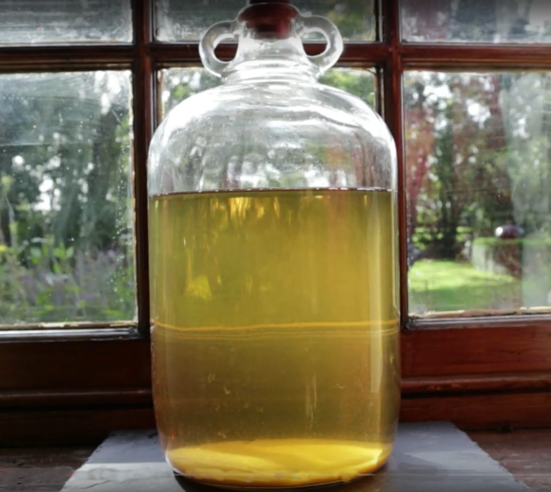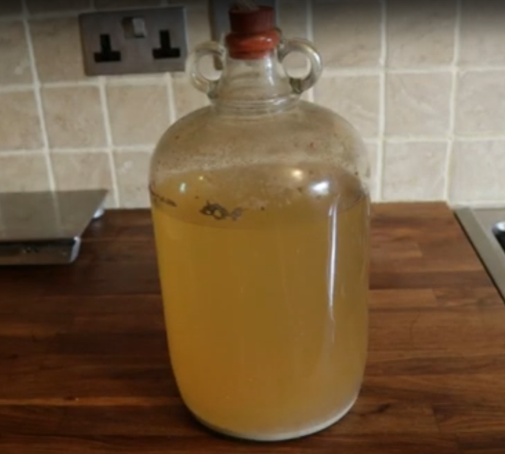 Nadat het pecto-enzym zijn werk heeft gedaan is al eerder - met hulp van appelsap - een zogenaamde giststarter gemaakt. Met deze starter verloopt de vergisting veel sneller en beter. Het is belangrijk dat de temperatuur van beide - de pulp bewerkt door het enzym, en de giststarter (appelsap & gistvoedingszout) - hetzelfde zijn voor het beste resultaat. Aldus het advies van kenner John Waelpoel