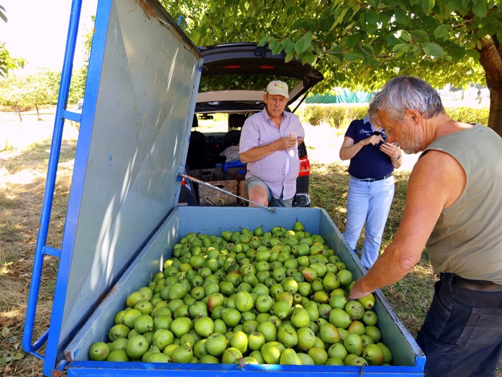 In de fruitweide staan 9 perenbomen van de soorten Doyenné de Comice en Saint Remy. De eerste is een dikke, sappige handpeer, maar ook als stoofpeer te gebruiken. De Saint Remy is een harde peer en daarom vooral als stoofpeer te verwerken in de keuken. De pluktijd van de Doyenné is tweede helft september, de Saint Remy oogst je in oktober.