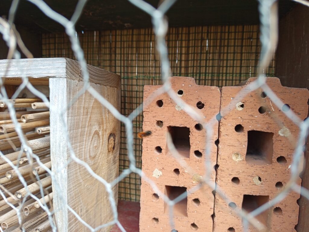 We willen meer gasten aan trekken in de bijenhotels en niet alleen bijen van dezelfde soort, maar meer diversiteit. Sommige hotel blokken werden nooit bezet. De gangen mogen geen splinters bevatten en tochtige spleten in het hout of bamboe is niet gewenst, anders bouwen de metselbijen er geen nest.