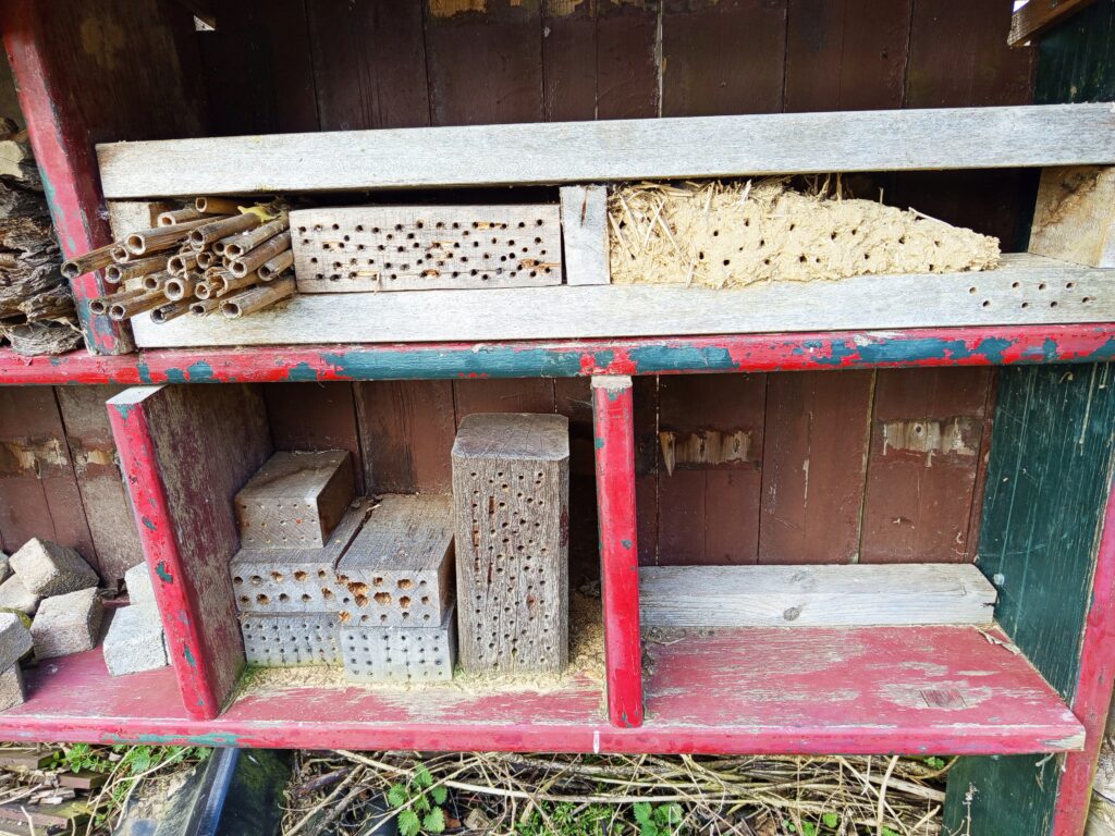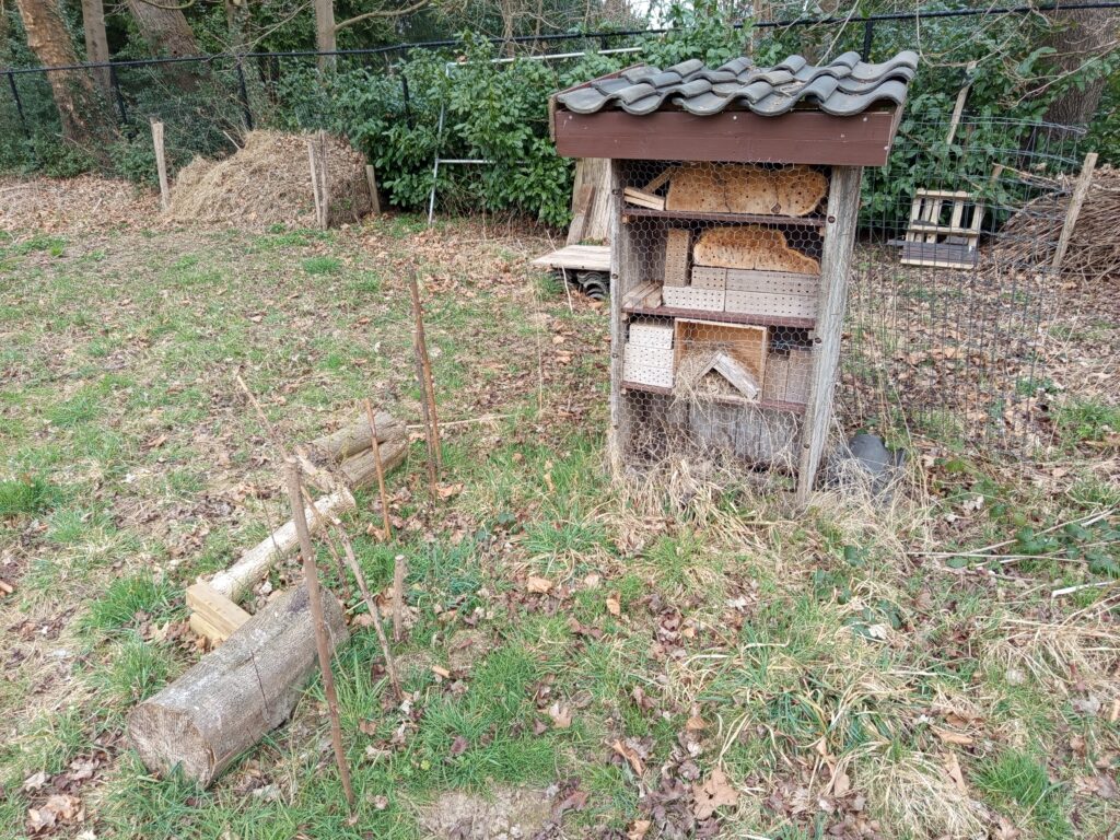 Het bijenhotel staat er niet goed bij. Vele elementen kunnen vernieuwd en verbeterd worden.